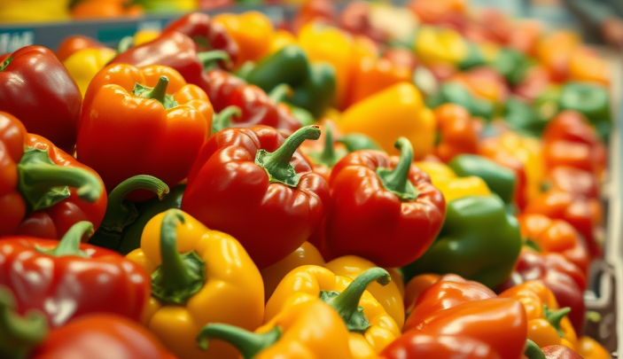 Me: (pointing to the colourful vegetables) Ru, look at these, red paprika, green paprika, orange paprika and yellow paprika.