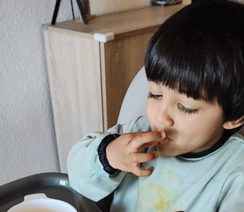 Ru: (without missing a beat and standing up on his high chair while grinning and declaring as if he is done with his dinner) Lion will eat it!